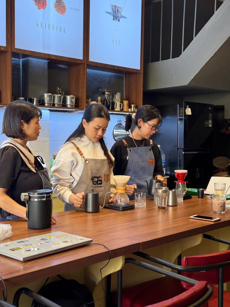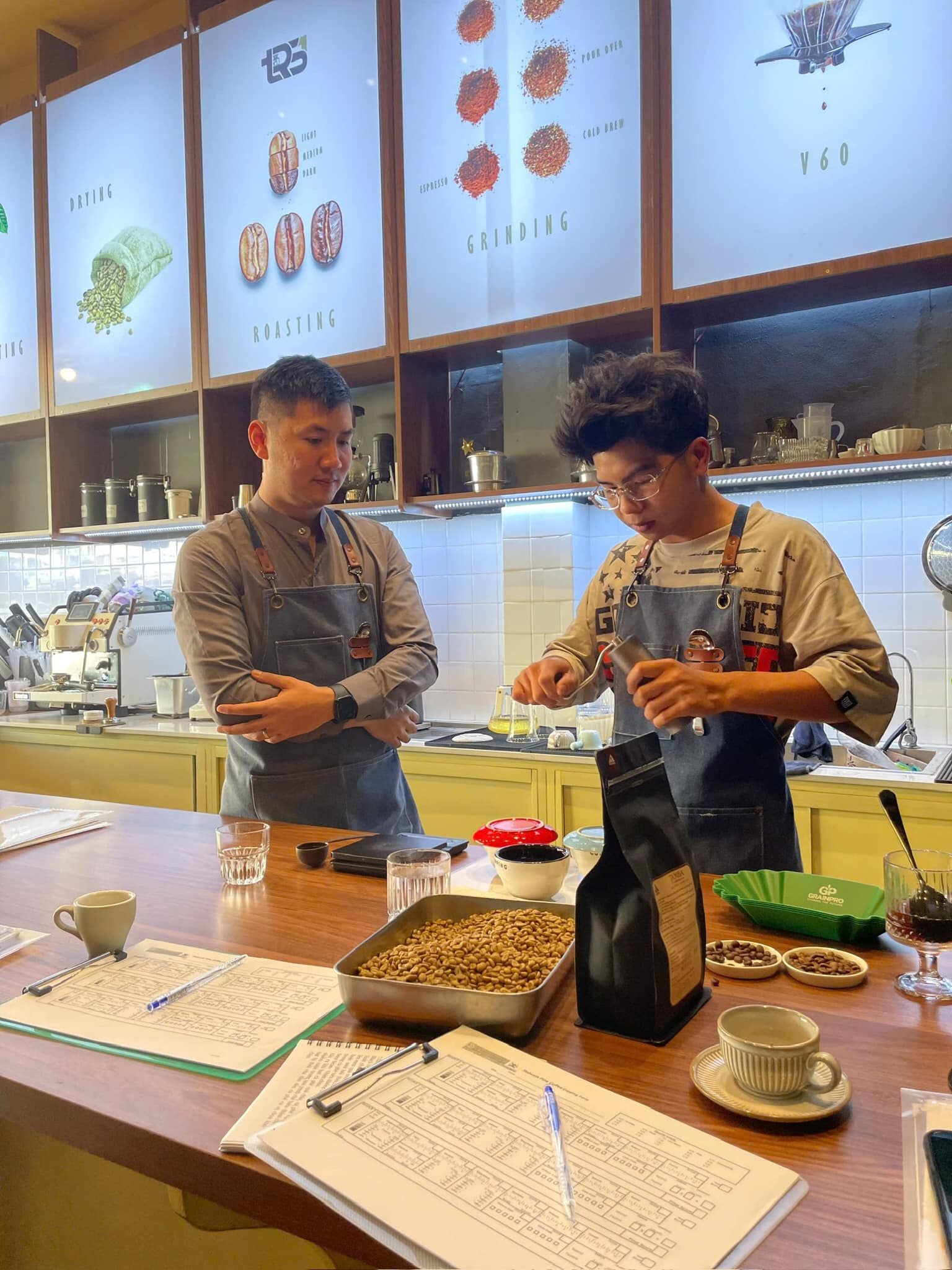 Chúng tôi đào tạo chuyên sâu từ nền tảng chiết xuất, kỹ năng barista đến quản trị quán. Học viên được thực hành 100%, rèn luyện khả năng quyết định & kiểm soát chất lượng, để tự tin xây dựng phong cách và kết nối khách hàng.